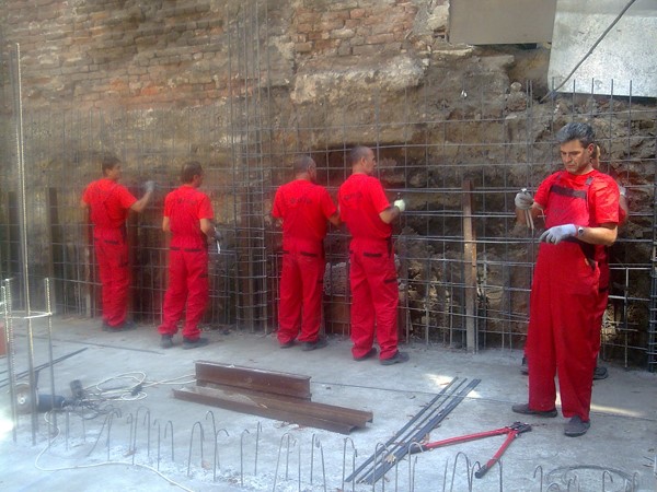 Раковски и ул. Поп Богомил. Фирма РИМ БИЛД имаше сключен договор за събарянето на съществуваща постройка и изготвянето на проект за укрепване и изграждане на основи и плоча до кота ±0. Наличието на съседни сгради изисква изкопа да е укрепен допълнително, което наложи изграждането на укрепване тип „Берлинска стена”. След полагането на армировка и изграждането на цялостен фундамент с дебелина 80 см, строежът беше завършен с полагането на затваряща плоча достигаща ниво кота ±0.